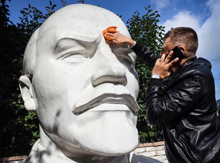 Read moreA staff member of a local branch of the Russian Communist Party washes a huge monument to Vladimir Lenin in front of the party's local office in Novosibirsk on September 9, 2020. #