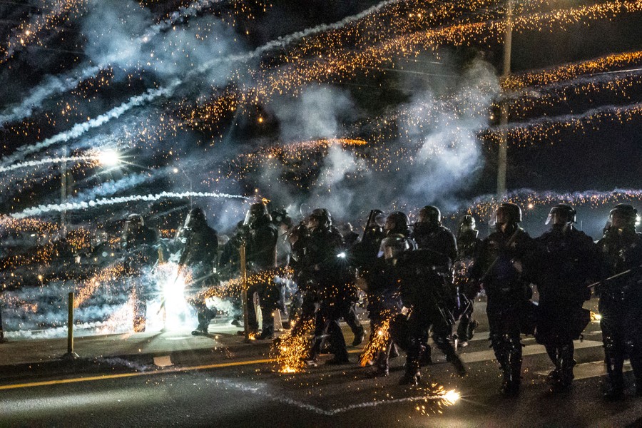 Read moreOregon state troopers and Portland police advance through tear gas and fireworks while dispersing a protest against police brutality and racial injustice on September 5, 2020, in Portland, Oregon. #