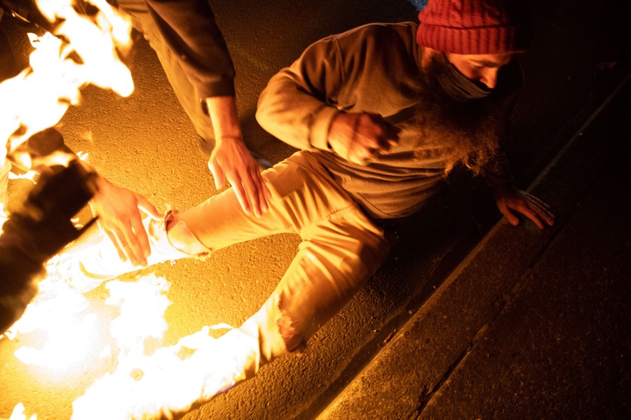 Read morePeople help a protester who caught fire after a Molotov cocktail was thrown at Portland police officers on the 100th consecutive night of protests in Portland, Oregon, on September 5, 2020. #