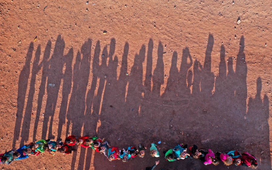 Read moreAn aerial view shows displaced Syrian youths standing in a line ahead of classes, after tents were transformed into classrooms, at a camp for the internally displaced in the town of Ma'arrat Misrin in Syria's northwestern Idlib governorate on October 6, 2020. #