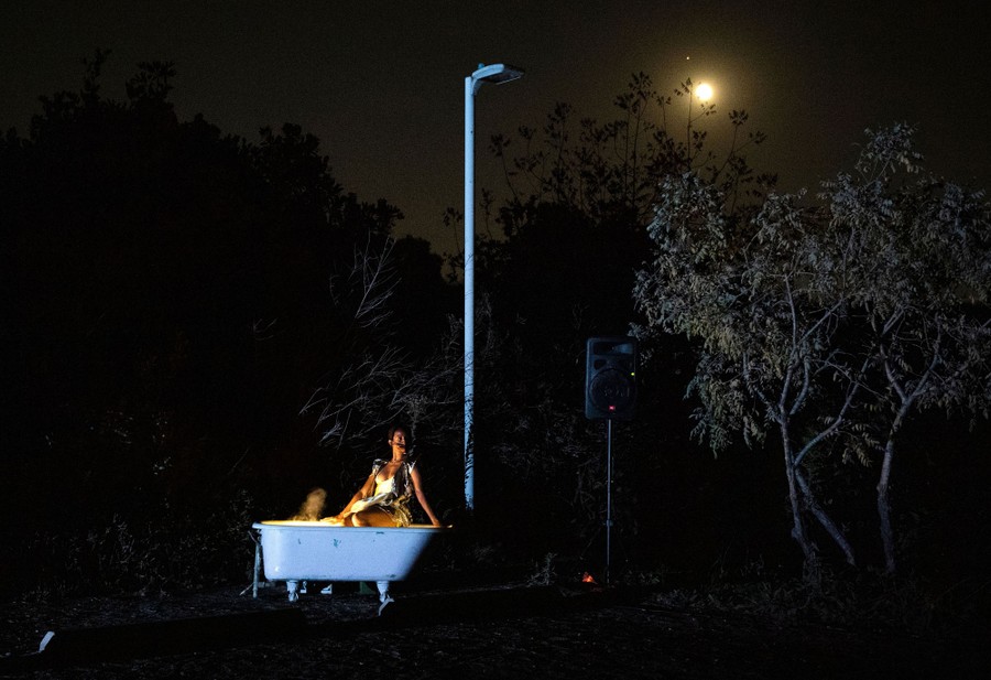 Read moreThe moon rises as a dancer from Heidi Duckler Dance performs during an event as part of the company's 35th-anniversary celebration, called The Quest, at Baldwin Hills Scenic Overlook in Culver City, California, on October 2, 2020. The company is holding drive-up shows during the coronavirus pandemic. #