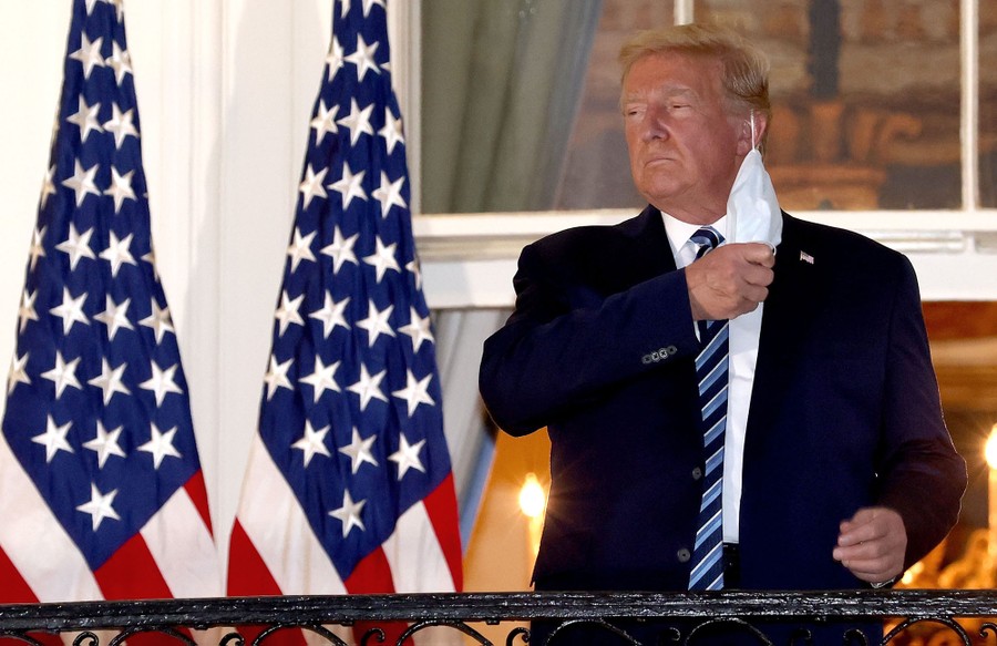 Read morePresident Donald Trump removes his mask upon his return to the White House from Walter Reed National Military Medical Center on October 5, 2020, in Washington, D.C. Trump spent three days hospitalized for the coronavirus. #