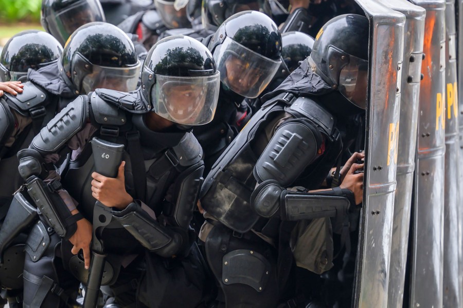 Read morePolice prepare to fire tear gas during clashes with activists on the last day of a three-day nationwide strike against a controversial new law that critics fear will favor investors at the expense of labor rights and the environment, in Jakarta, Indonesia, on October 8, 2020. #