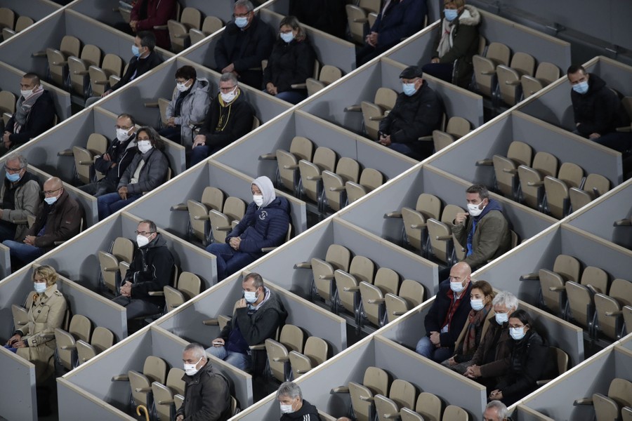 Read moreSpectators watch Austria's Dominic Thiem and Croatia's Marin Cilic play their first-round match of the French Open tennis tournament at the Roland Garros Stadium in Paris, France, on September 28, 2020. #