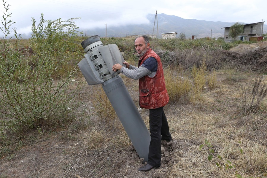 Read moreA picture shows a rocket shell in the Ivanyan community on October 1, 2020. Armenian and Azerbaijani forces intensified their shelling on October 1, despite calls from the U.S., France, and Russia for an end to days of fighting over the disputed Nagorno-Karabakh region that have left more than 130 dead. #
