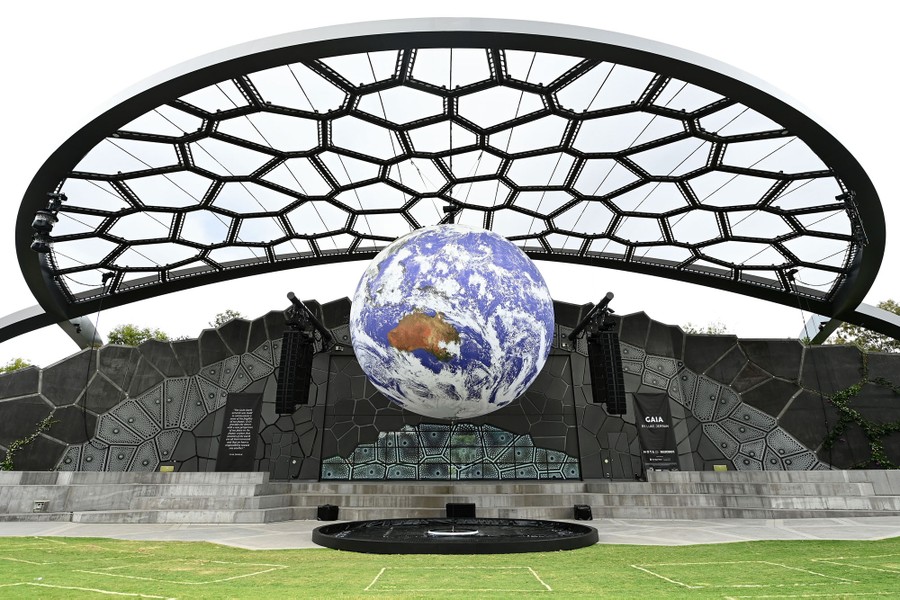 Read moreThe art installation Gaia is seen on display at Home of the Arts in Gold Coast, Australia, on September 30, 2020. The work, created by the U.K. artist Luke Jerram, measures seven meters in diameter, with internal lighting that combines detailed NASA imagery of the Earth. The spherical sculpture is accompanied by a specially made surround-sound composition by the composer Dan Jones. #