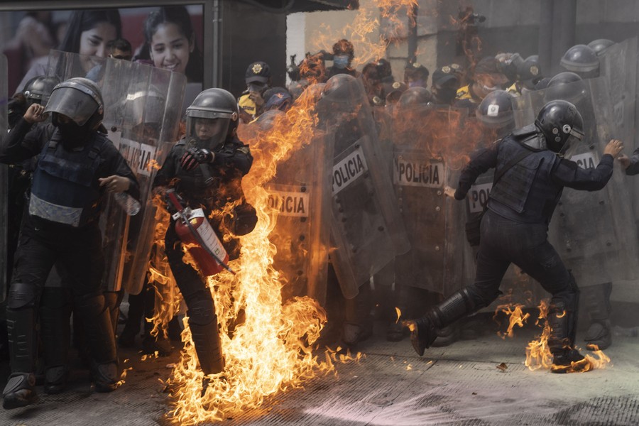 Read moreIn Mexico City, a police officer attempts to put out a fire from a petrol bomb, during a demonstration in favor of the decriminalization of abortion on International Safe Abortion Day, on September 28, 2020. #