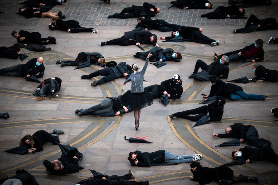 Dancing on Bolivia’s Salar de Uyuni, curfew measures in Bucharest, coronavirus testing in the U.K., monowheel broomsticks in Brazil, a marigold harvest in Kathmandu, celebrations of Joe Biden’s presidential win, a press conference at Philadelphia’s Four Seasons Total Landscaping, Veterans’ Day memorials, a wedding in Moscow, and much more