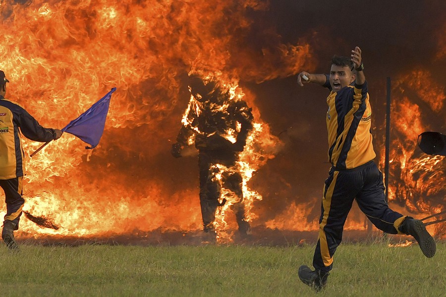 Read moreCaptain Shivam Singh, a motorcycle rider from the Tornadoes motorcycle-acrobatic team of the Indian Armed Forces, comes out ablaze after riding his bike through a tunnel of fire, during an attempt to break the Guinness Book of World Records in Bangalore on November 10, 2020. Singh broke the record for the longest ride through a fire tunnel, passing through 127 meters, and escaping with only minor injuries. #