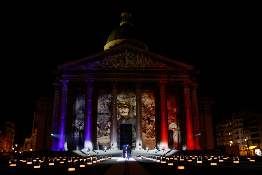 Read moreSoldiers carry the coffin of the late French writer Maurice Genevoix into the Pantheon mausoleum during a ceremony honoring World War I soldiers and Genevoix, who will be inducted into the Pantheon, where key figures from France's history are honored, in Paris, on November 11, 2020. #