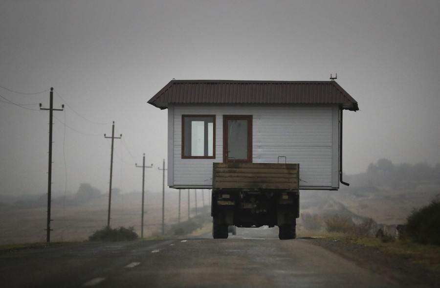 Read moreA family drives a truck loaded with a small house along a highway as they leave their home village in the separatist region of Nagorno-Karabakh on November 18, 2020. A Russia-brokered cease-fire to halt six weeks of fighting over Nagorno-Karabakh stipulated that Armenia turn over control of some areas it holds outside the separatist territory's borders to Azerbaijan. #