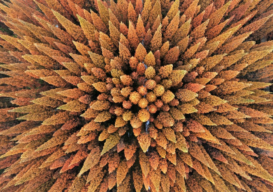 Read moreAn aerial view of a stand of Metasequoia trees (also known as dawn redwoods) in Baoyinghu National Wetland Park in Yangzhou, Jiangsu province, China, on December 1, 2020 #