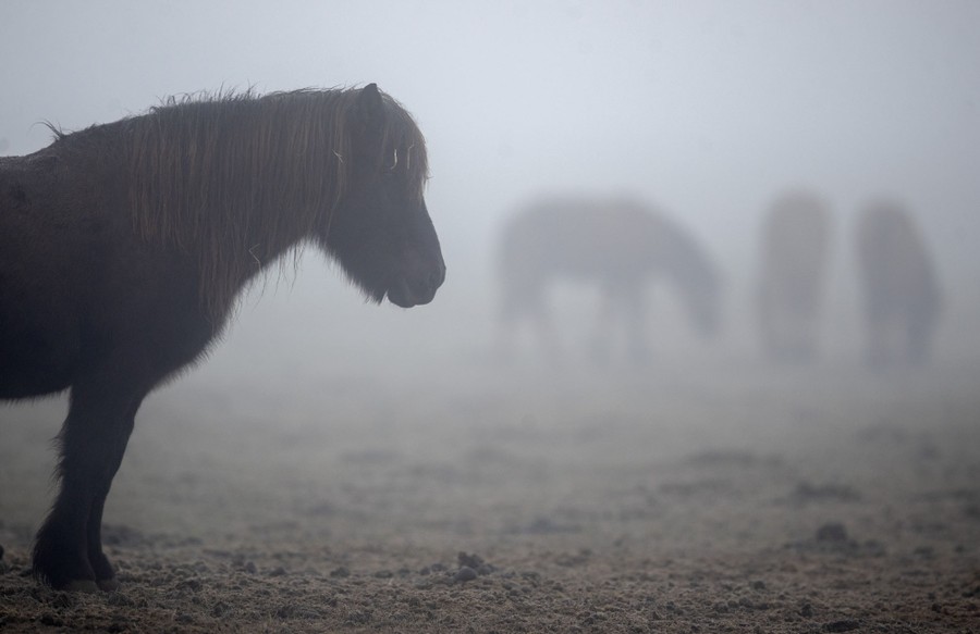 Read moreAn Icelandic horse stands in the paddock of a stud farm in Wehrheim near Frankfurt, Germany, while others graze in the background on a foggy Saturday, on November 28, 2020. #