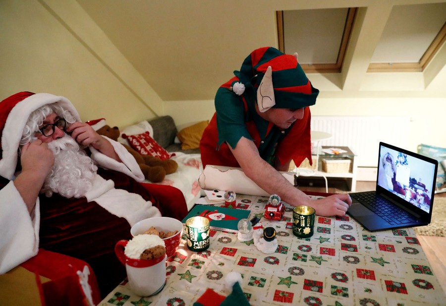 Read moreAn assistant helps Pal Pillmayer, dressed as Santa Claus, as he prepares to interact with children via video chat, amid the coronavirus outbreak in Budapest, Hungary, on November 30, 2020. #
