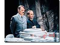 Like all deluded people who prize action and emotion above reflection, Adolf Hitler seems never to have entertained doubt about anything, let alone his blueprint for world mastery. Barry Hershey's ambitious, fascinating feature debut, The Empty Mirror, imagines the dictator incarcerated after the Second World War and forced to contemplate his horrible life's work. Played by British actor Norman Rodway with a blackly comic balance of bombast and dementia, Hitler obsesses over newsreels and Nazi propaganda films, takes meetings with the likes of Freud (Peter Michael Goetz) and Eva Braun (the radiant Danish actress Camilla Soeberg), pouts at the fact that Roosevelt was Time magazine's Man of the Year more often than he was, and trashes every recipe for mystifying the masses that isn't his. ("Compared to you," says his diminutive yes-man Goebbels, wittily played by Joel Grey, "Wagner was a minimalist.") Though the dialogue, written by Hershey and R. Buckingham, is bracing ("The Jews take their removal so personally," muses the Fuhrer), when every utterance is a topic sentence, the cumulative effect can be wearing. What saves this two-hour movie from sagging is its inventive use of effects -- in particular the poetic ingenuity of Frederick Elmes (cinematographer to David Lynch and Jim Jarmusch), who integrates Nazi film footage (notably Hitler apologist Leni Riefenstahl's masterpiece, Triumph of the Will) into the dictator's mad soliloquies. Hershey's thesis is that confronted with the enormity of his crimes and the failure of his plans, Hitler must surely have come undone. I hope he's right.