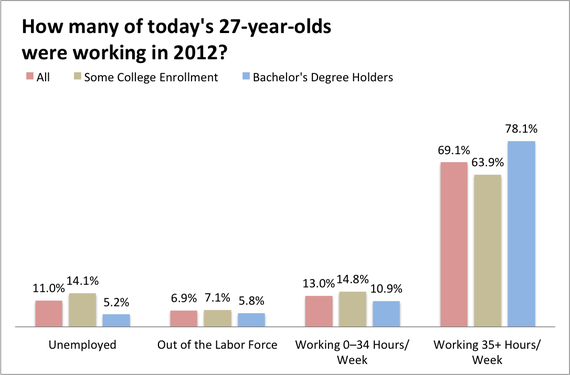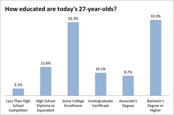 1. More than 84 percent of today's 27-year-olds have some college education. Only a third have a bachelor's degree.