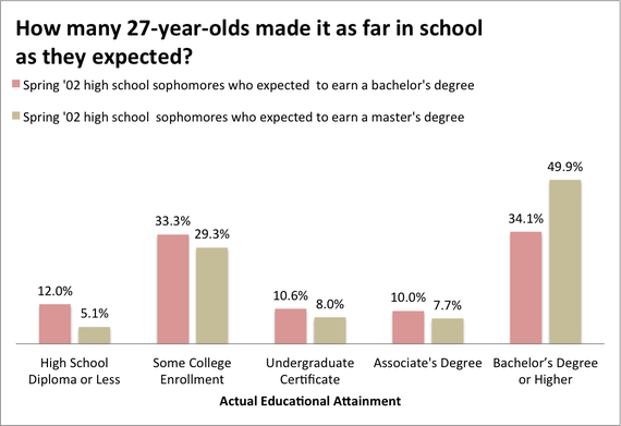 3. School was hard. Of those sophomores who expected to eventually earn a bachelor's degree, 34 percent did it.