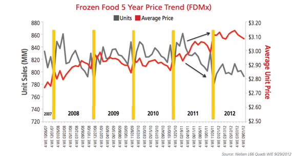 But now, just about every category of frozen ready meals is falling. TV dinners had their moment in the US. Apparently, that moment is over.