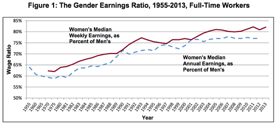 Women who worked full time in 2013 made 82.1 percent as much as their male counterparts, an increase of about one percent from last year, the IWPR reported.