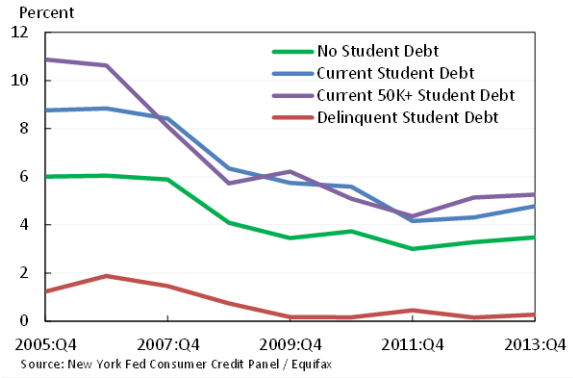 Which Student Debtors Buy Homes?: Rate of Mortgage Originations, Ages 25-30, by Loan Status