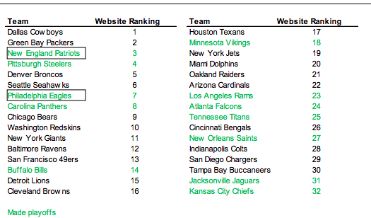 The Most Popular NFL Teams, by Traffic to Their Websites