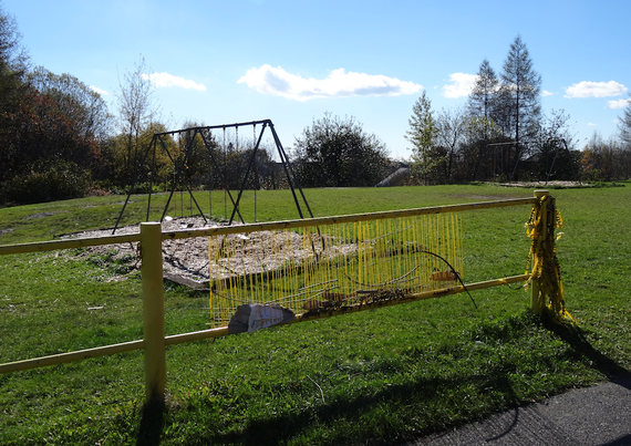 (Elementary school playground, with art project.)
