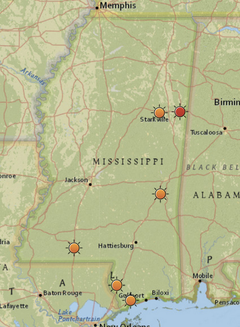 The red spot in northeastern Mississippi is