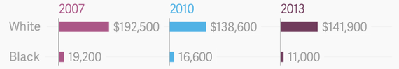 And the recession hasn't only affected people coming out of college. The median net worth of white households was 10 times that of black households’ median wealth in 2007—and 13 times the median wealth of black households in 2013, according to a recent Pew Research Center report.