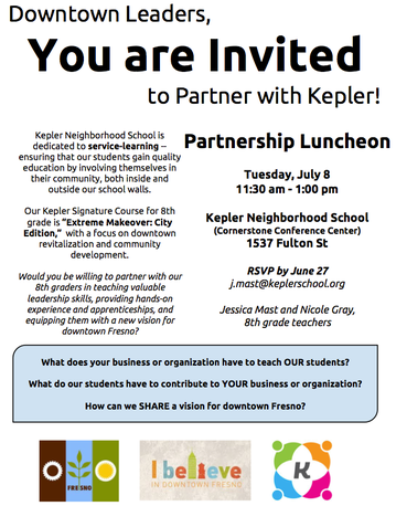 Thus the places of downtown Fresno become the classrooms of Kepler. Teachers in each grade interweave academics and real-world skills with special themes and projects.