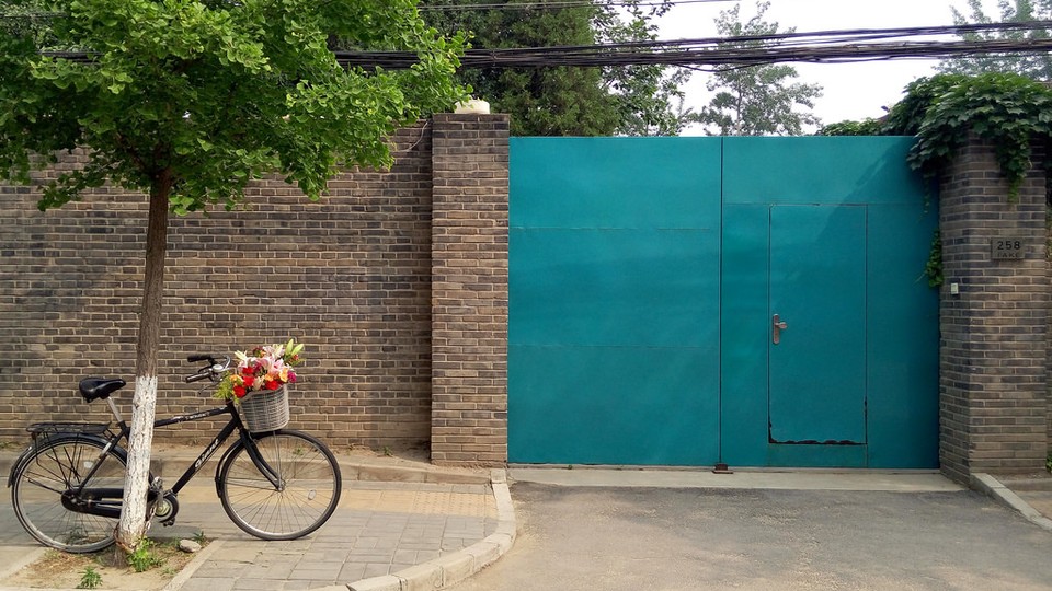 With Flowers endured for about 600 days. Ai started the performance on November 30, 2013, more than two years into his confinement.* The demonstration serves as an extraordinary record of his imprisonment: He placed the flowers outside the aquamarine door at 258 Caochangdi, home to his art studio as well as his design and architecture firm, FAKE Design. They were mighty arrangements, rarely modest, all formally documented on Flickr. Ai is both active and savvy on social media (which is part of what prompted his trouble with the authorities), and his flowers traveled far beyond the plastic basket on his black Giant bike via posts on Flickr, Instagram, and Twitter.