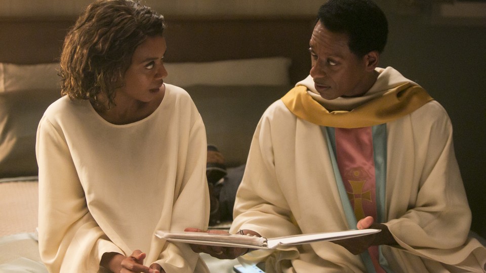 The first episode, “Ralphie,” draws on the Duplasses’ previous work with horror, starring Melonie Diaz as an earnest babysitter. Before she arrives, a father (Ross Partridge) is seen sitting in the motel room with his head in his hands, and the question of what’s troubling him looms ominously after he leaves. There are surprises and jump scares and twists, and if the ending feels less sophisticated than the rest of the episode might merit, it’s at least a gripping and tightly directed 20 minutes. The same can be said for “The Knockadoo,” a dive into a Scientology-like cult initiation involving DVDs, past-life experiences, and a horrific final montage. The strange, chilling story features superb performances by Sameerah Luqmaan-Harris as a woman seeking salvation and American Gods’ Orlando Jones as the snake-oil priest taking her money.