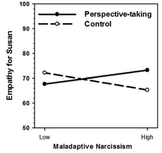 The subjects who were told to take Susan’s perspective were significantly more likely to score higher on empathy. In fact, the more narcissistic they were, the more the trick seemed to work.