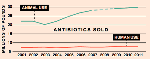 Also, a whole other concern (Emergency? That’s probably legit) inseparable from any discussion of the health effects industrial farming: 80 percent of antibiotics are being used in animals, cattle and chicken alike.