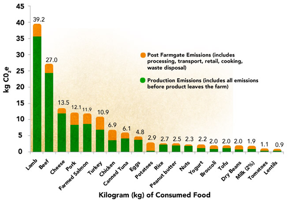 About a quarter of greenhouse gas emissions come from agriculture. First, here’s the hierarchy of meats (well, proteins) in terms of impact on the environment: