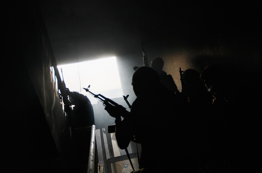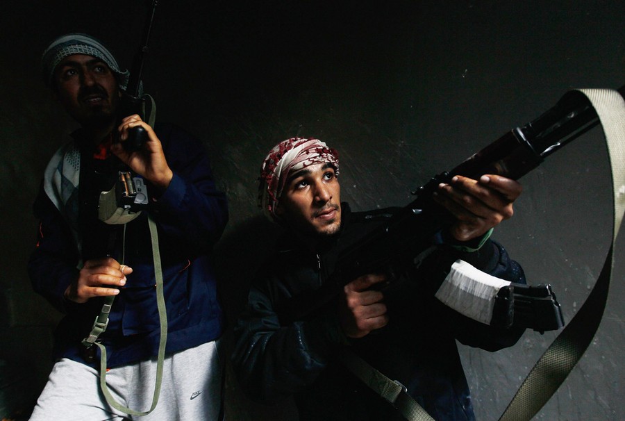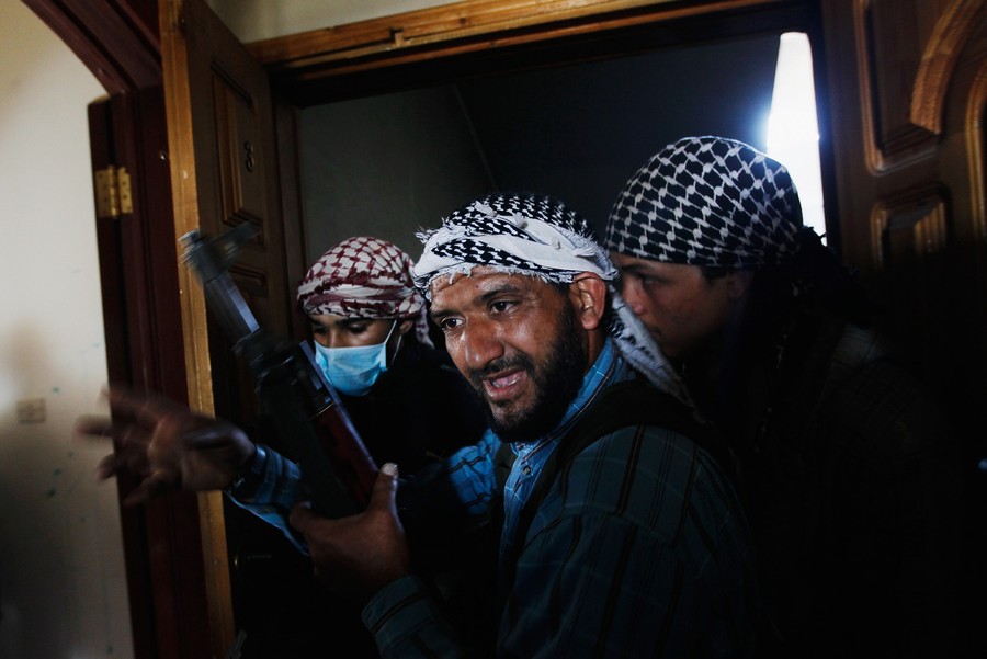 Read moreLibyan rebel fighters discuss how to dislodge some ensconced government loyalist troops who were firing on them from the next room during house-to-house fighting on Tripoli Street in downtown Misrata April 20, 2011 in Misrata, Libya. #