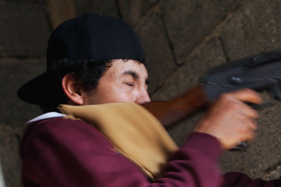 Read moreA Libyan rebel fighter fires into a basement during an effort to dislodge some ensconced government loyalist troops who were firing on them during house-to-house fighting on Tripoli Street in downtown Misrata April 20, 2011. #