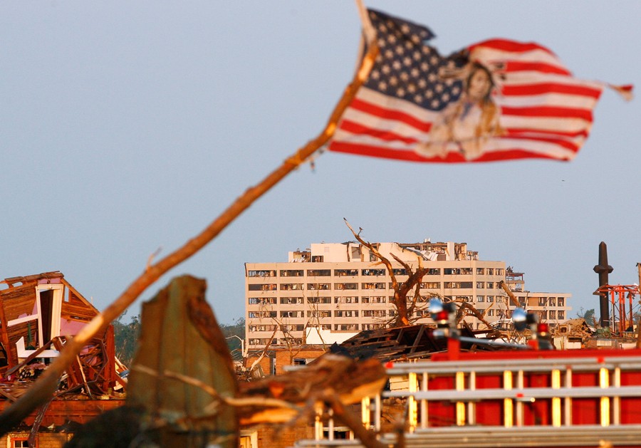 At least 116 people died in a massive tornado that left a path of destruction nearly a mile wide through the heart of Joplin, Missouri, on Sunday. The cyclone destroyed hundreds of homes and vehicles, as well as a high school and a hospital. Rescue teams have been working hard to find and assist as many people as possible, even as another storm system passes through region today. Tens of thousands are now living without power around this small city, where an estimated 30 percent of the structures were flattened or damaged by the massive storm. Collected here are some images of the aftermath in Joplin as residents and rescue workers survey what remains.