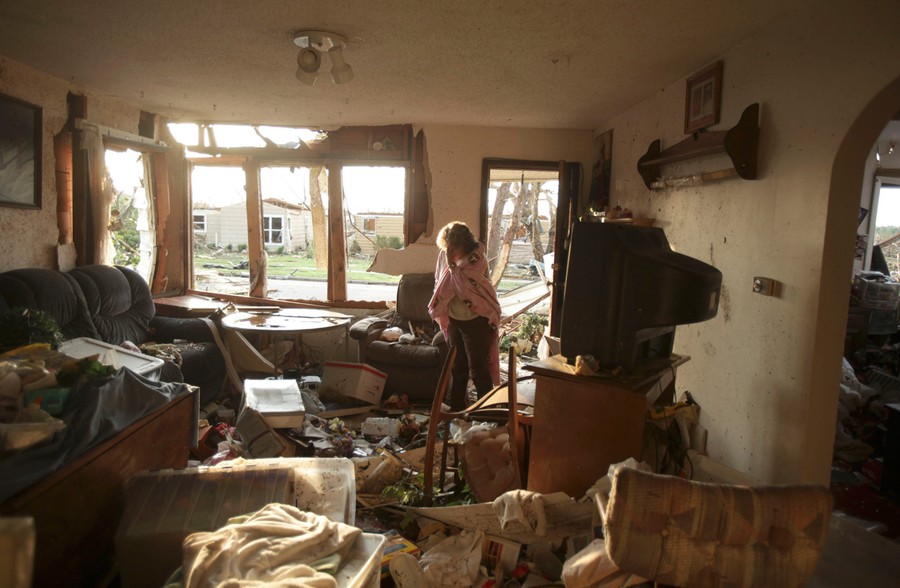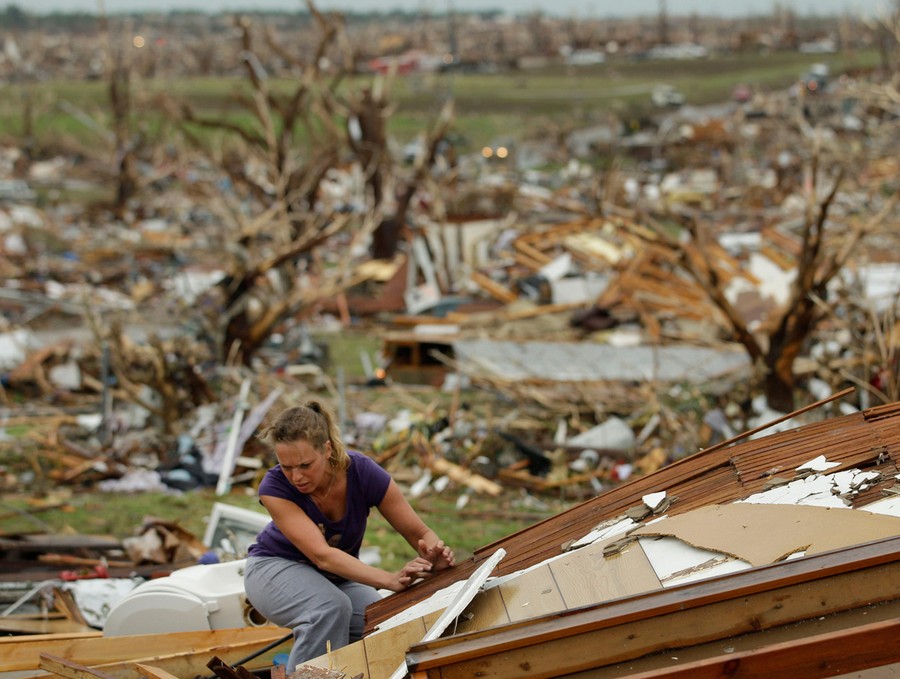 Evelyn Knoblauch sorts through the personal belongings of one of her children after their home was damaged when a devastating tornado hit Joplin, Missouri, on May 23, 2011.#