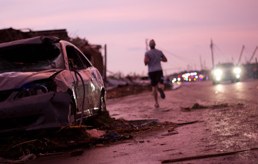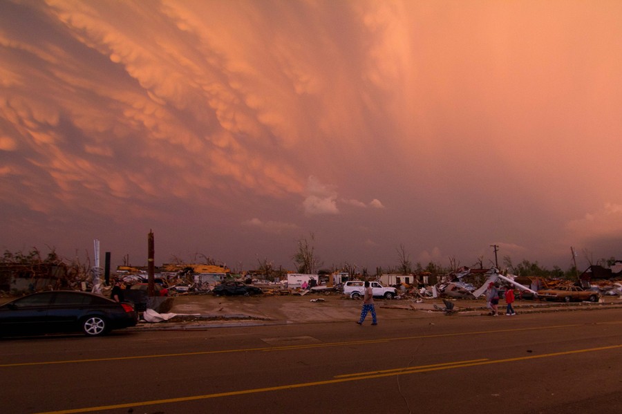 (1 of 5) The following five photos come from photographer Aaron DuRall, titled "Six Blocks Away From My Home". Mammatus clouds above the wreckage in Joplin, Missouri on May 22, 2011. Original here.#