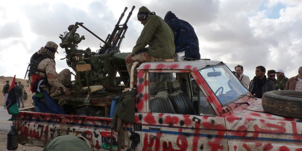 On the long highway between Benghazi and points west, it's sometimes hard to know where exactly the "front line" is. In our big red Ford Flex SUV, we'd drive along that highway -- a lone road through the desert -- to the top of one hill, where a lot of guys were standing around holding Kalashnikovs and other weapons. We'd stop, roll down the window, and ask what was going on. If things looked interesting, we'd get out, talk to people, and take photos. And then we'd see other guys on top of the next hill a kilometer or two down the road, maybe with a Grad rocket launcher on it or some pickup trucks with anti-aircraft guns, so we'd drive on to that hill, after convincing our driver it was a good idea. And so on. We were about 15 to 20 kilometers east of Brega and about 55 km west of Ajdabiyah.