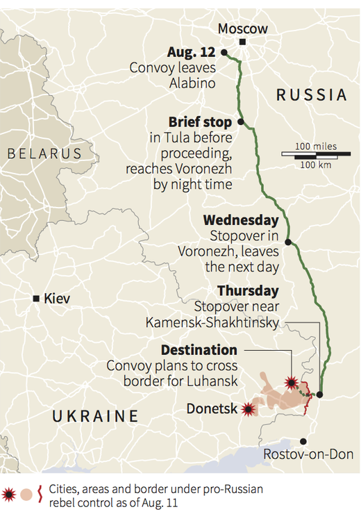 Putin's "pattern of escalating aggression," to borrow a phrase from the Obama administration, is confounding. Sometimes, it looks like this grainy image from NATO of a Russian military convoy lugging artillery through Ukraine: