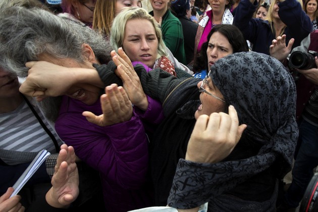 Protesters scuffle at the Western Wall in Jerusalem on November 2, 2016. (Sebastian Scheiner / AP)