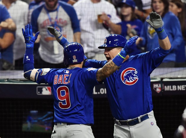 It looked as though the Cubs may yet again miss out on the title. But in the top of the 10th inning, with the game tied at 6, after play was delayed 17 minutes by rain, Ben Zobrist hit a double to score Albert Almora Jr. to take the lead. The Cubs would score another run, bringing an 8-6 lead into the bottom of the 10th inning.