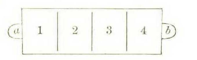 Among the Roman boys the game of Campana is also common. A parallelogram is drawn upon the ground and subdivided into four squares, which are numbered. At the top and bottom are two small semicircles, or bells, thus : —