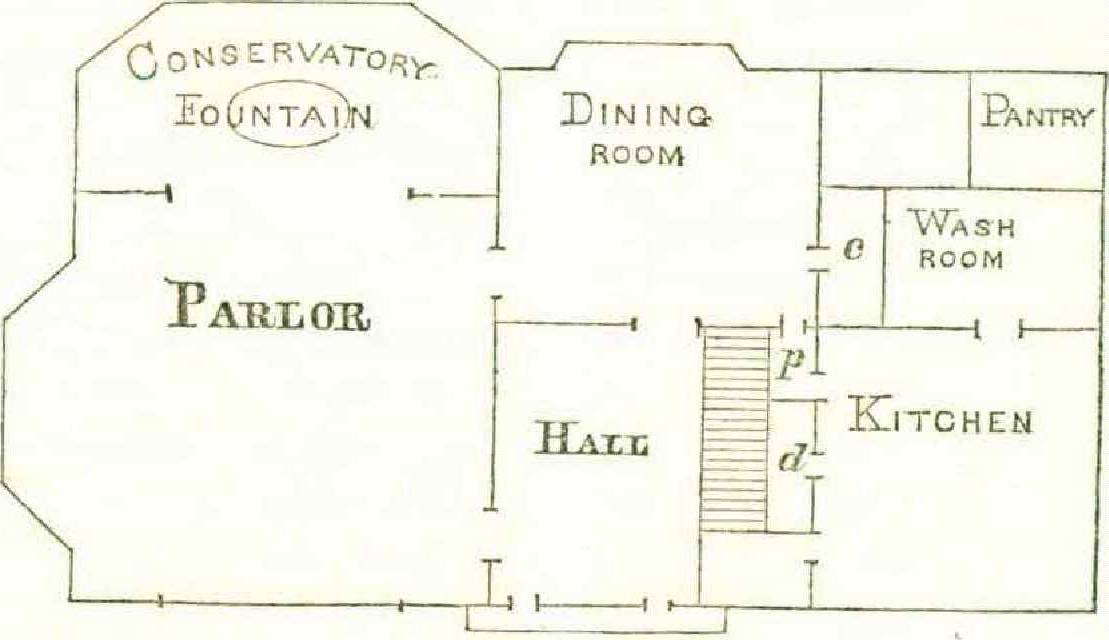 In larger houses a larger space might be appropriated in this way. We will not call it a conservatory, because that name suggests ideas of gardeners and mysteries of culture and rare plants which bring all sorts of care and expense in their train. We would rather call it a greenery, a room floored with earth, with glass sides to admit the sun, — and let it open on as many other rooms of the house as possible.
