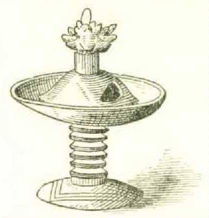 The artificial light of Africa and the tropics generally is a torch; the Burmans use petroleum. They have but little use for anything beside the bonfire to illuminate their night concerts. Wassan on the Gold Coast, however, showed a small black earthenware lamp, rather superior in its shape to most of its surroundings. It is six inches in height, and has a dome-shaped chamber and dish. The former has a hole fur the palm oil and a smaller one for the wick. The clay Exhibit. is heavy and micaceous. Greek and Etruscan domestic and votive lamps, oc what may In: somewhat disrespectfully called the butterboat pattern, were among the few archaic remains exhibited. The classic form seems to have been wide-spread, in ancient Egypt, Etruria, and Rome. Dr. Schliemann found the same in the excavations of Hissarlik. An ancient Egyptian wick - cutter is in the British Museum. The rudest lamp, too crude to be worth presenting, probably, may be found in a pan or Calabash of oil or grease, with a wick over the side or supported by a piece or two of stone to prevent burning the dish, if it be of wood. Such were common in Western cabins within the memory of some of the present generation.