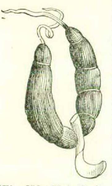 We dare not trust ourselves upon the voluminous subject of savage ornament, but may give a few specimens from countries which have already contributed to our collection. Figure 353 is a Hawaiian necklace (Niho palaoa), consisting of a bunch of human - hair braid, with an ivory, hook-shaped, pendent ornament. Figure 354 is an ear pendant made of a shark’s tooth and held to possess great virtue in New Zealand.
