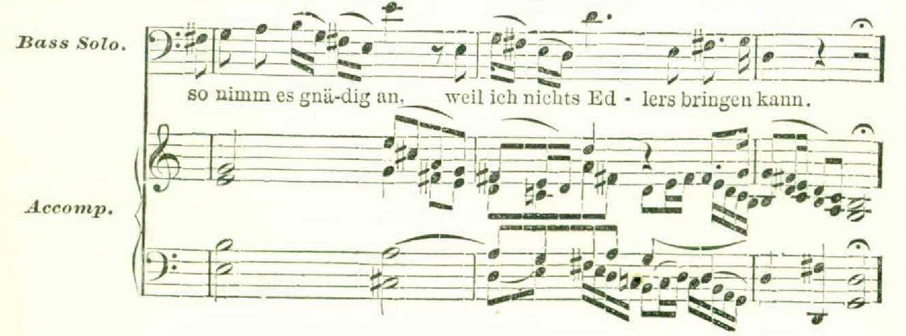 Franz has given abundant proof of his thorough appreciation of this characteristic of Bach’s style. Of his skill in reproducing such effects — effects is an unpleasant word, but let it pass — the following passage from his arrangement of the Saba cantata is a fine example. The words are, “ So accept it ” (that is, my heart) “ graciously, since I can bring nothing nobler.”