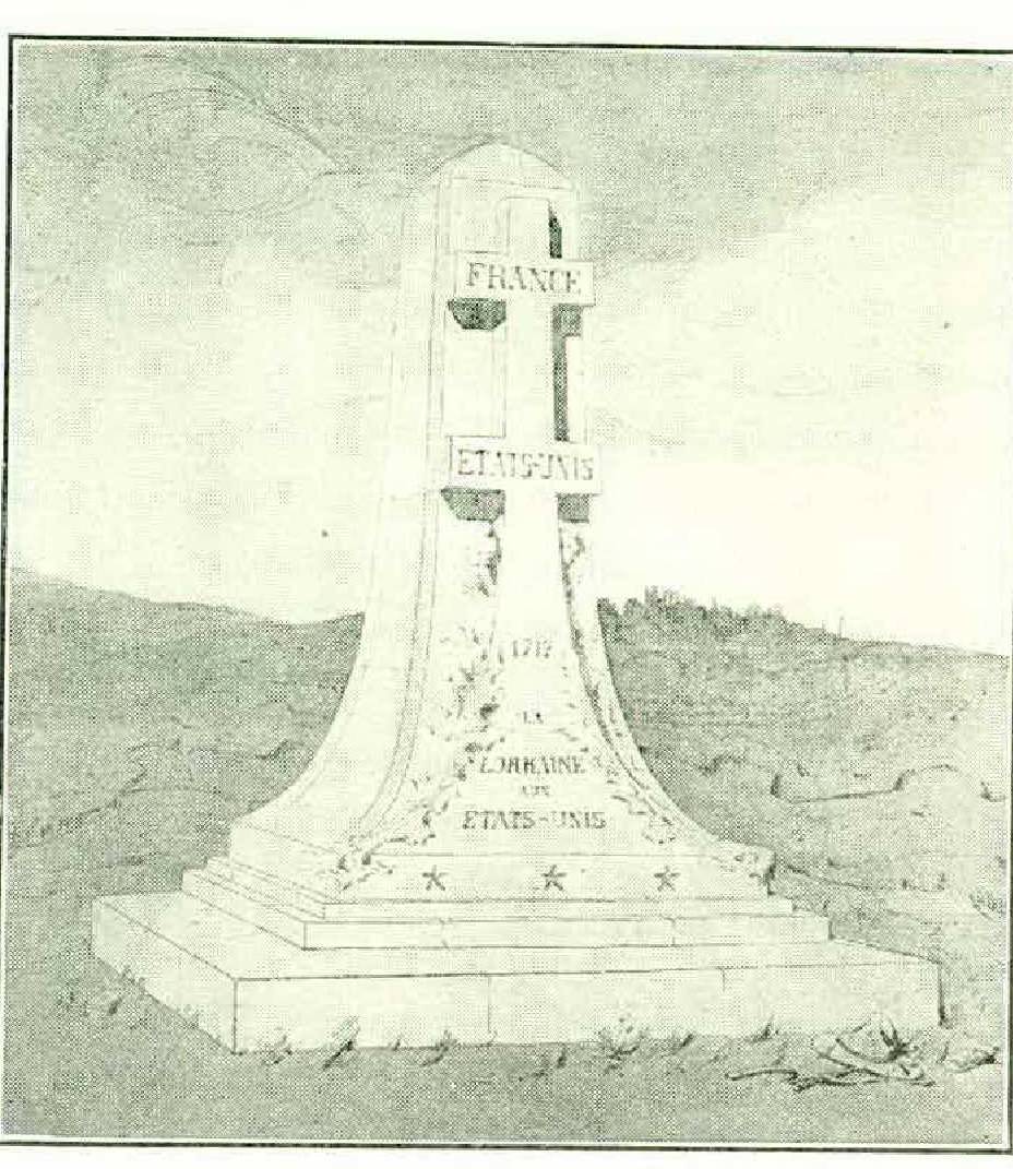 I have asked the excellent artist, Louis Maporelle (of Nancy), to preparea plan. The stones for it are now being cut at the School of Apprenticeship in Construction, instituted during the war at Nancy. I send you by this post a photograph of the clay model. You will see that the monument is, as is fitting, quite simple. It has no other ornament than the cross and thistles symbolical of Lorraine, and the stars suggestive of the glorious flag of the United States.