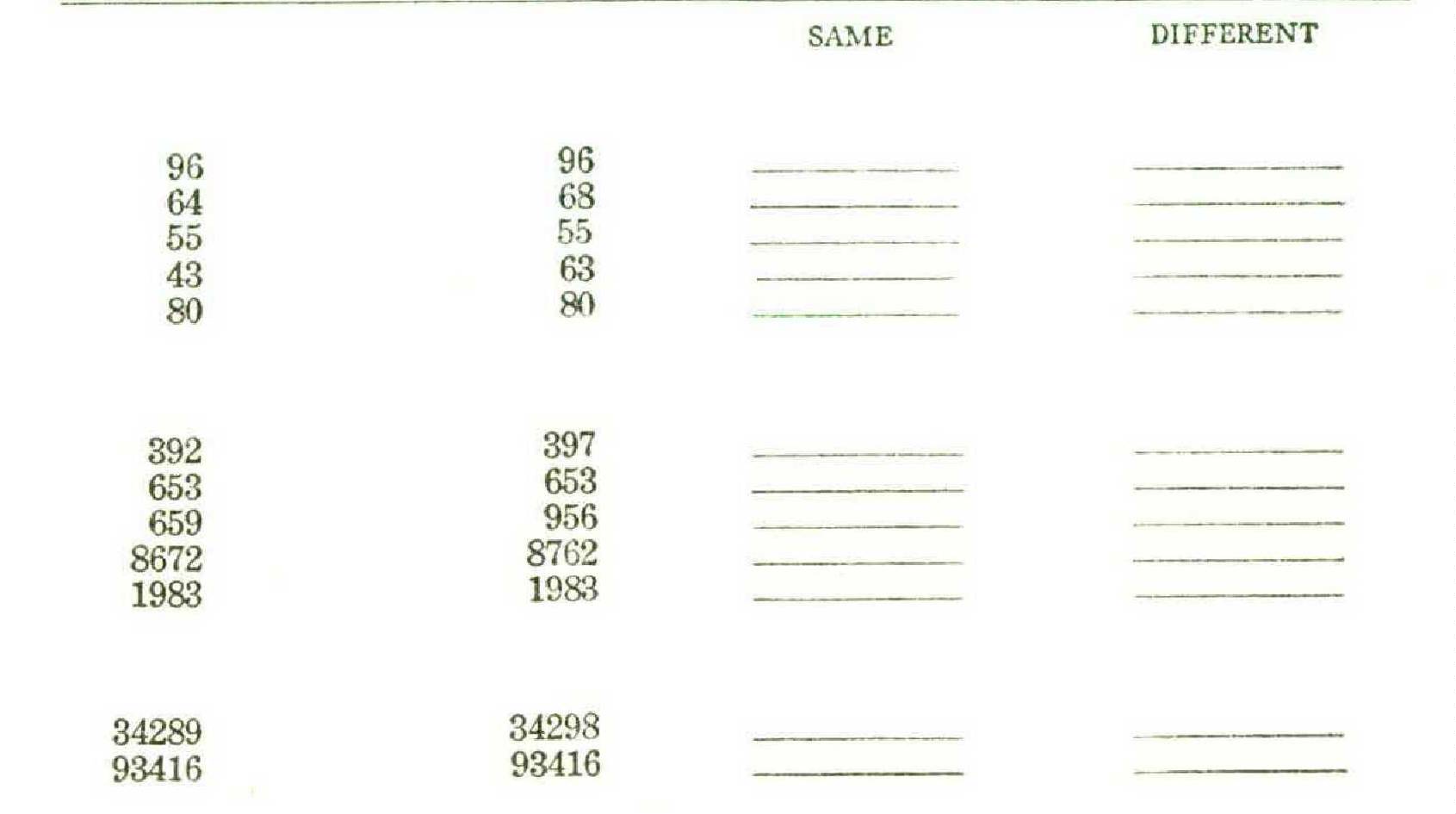 The number checking is a sample of banking, of auditing, and of accounting in general; for women it represents secretarial work and the higher types of clerical work, such as typing and stenography. It measures an instinctive gift for grasping the significance of symbols.